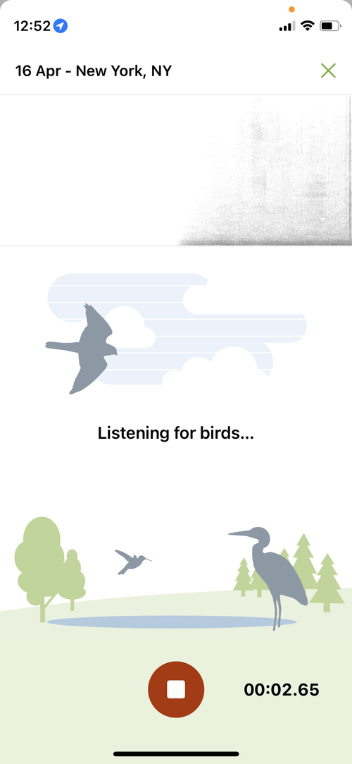 After a user has made an audio recording or uploaded an existing recording to Merlin, they are brought a screen that lets them review the analyzed audio clip. Users are able to navigate the audio file in three ways, using the play/ pause button, tapping one of the birds identified, or by manually dragging along the audio file.